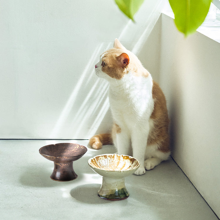 お皿の内側に刷毛模様を施し、そのバランスに合わせて足の部分にもニュアンスカラーを追加した〈刷毛模様・深型〉と、渋みのある風合いの中に、やさしい温もりを感じる〈伊羅保・浅型〉のうつわ。