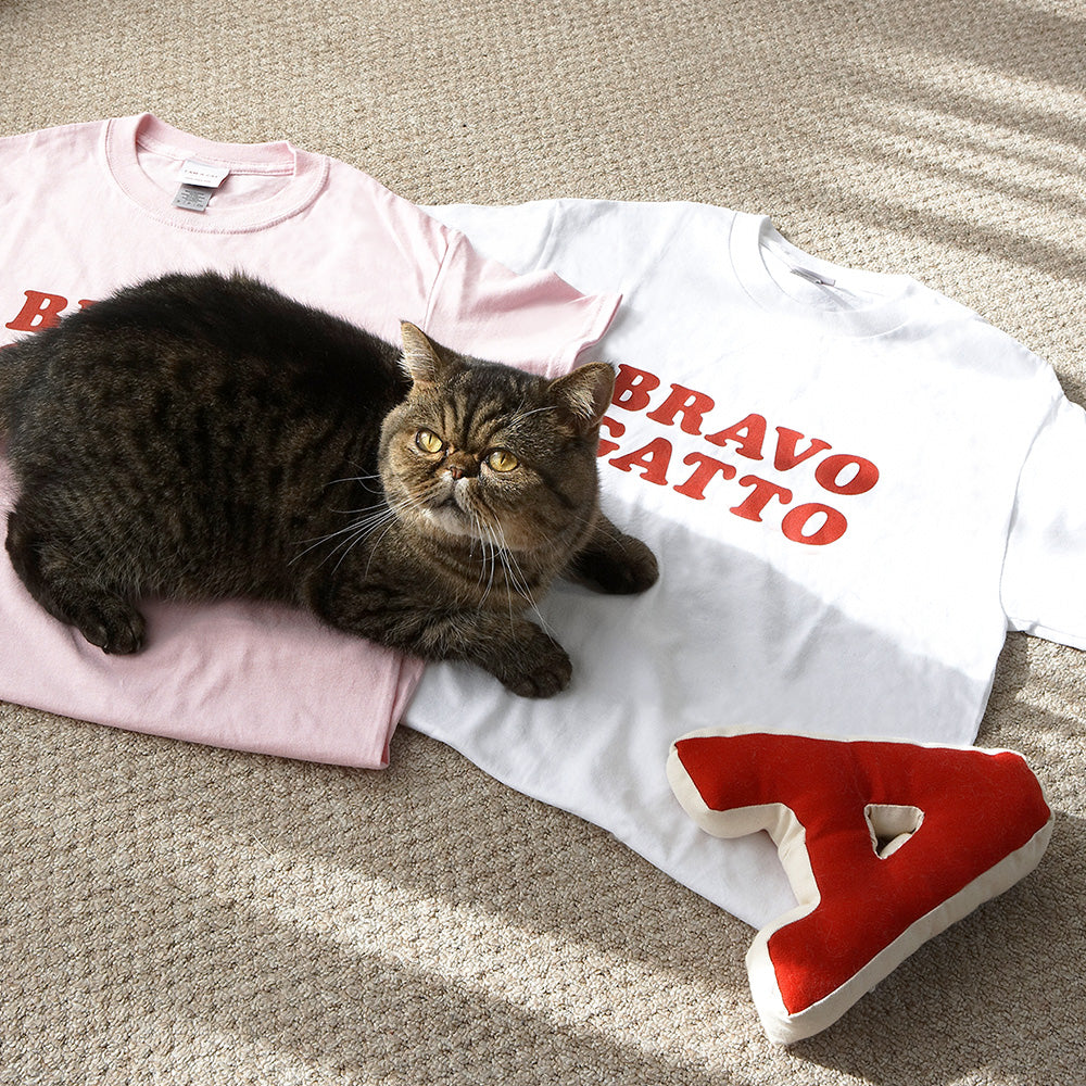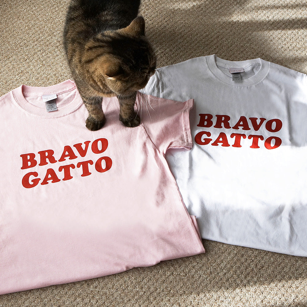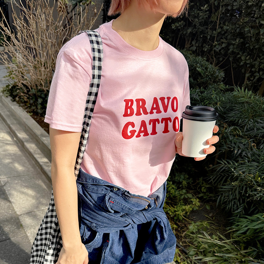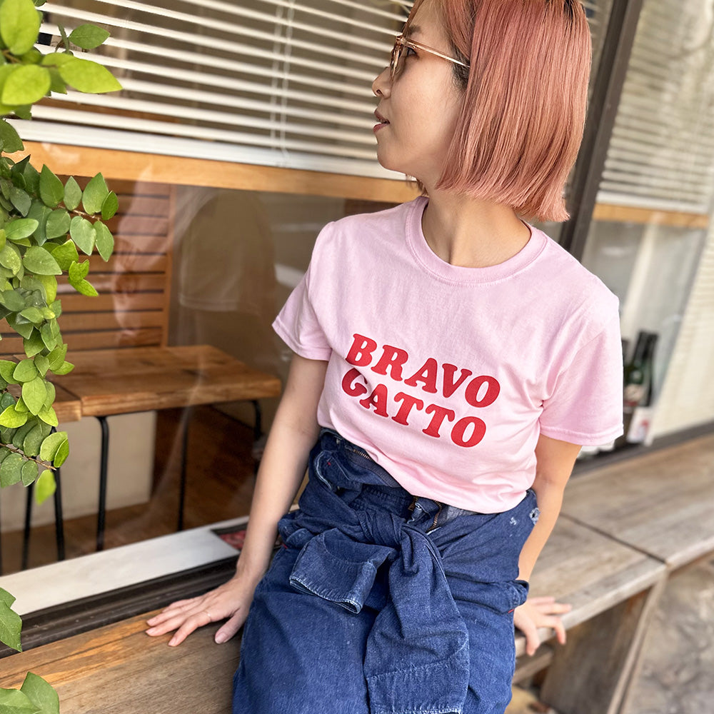 アメリカンテイストのボディ生地にプリントされたBRAVO GATTO。
