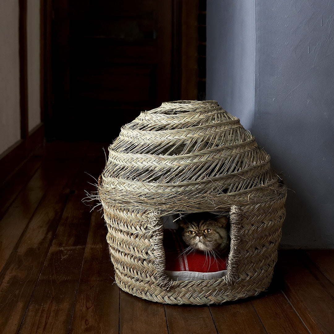モロッコの港町エッサウィラにて、ひとつひとつ職人さんによる手編みで作られたI AM A CATオリジナルのねこのおうちです。