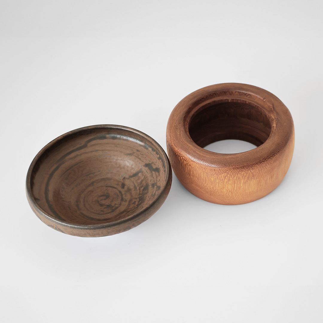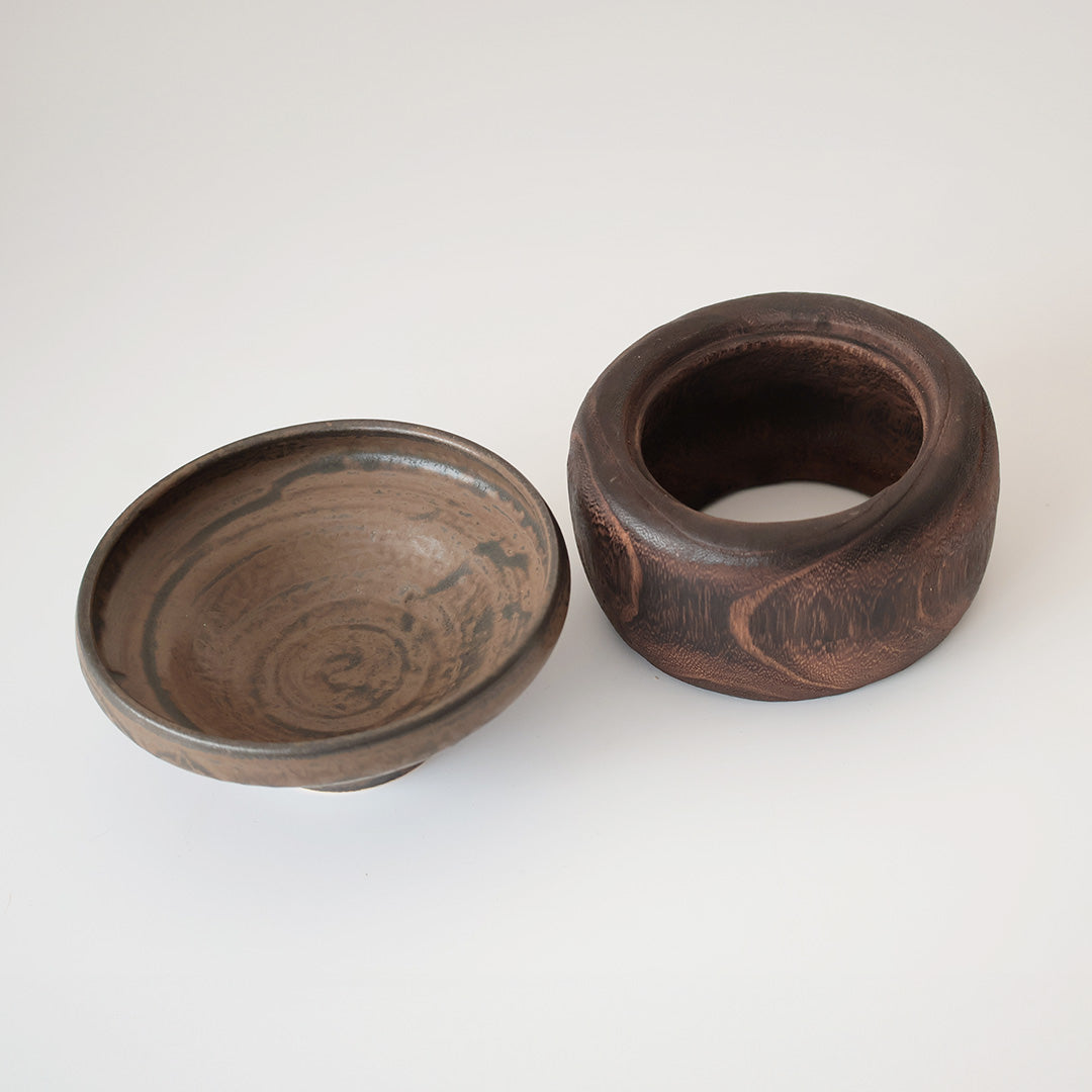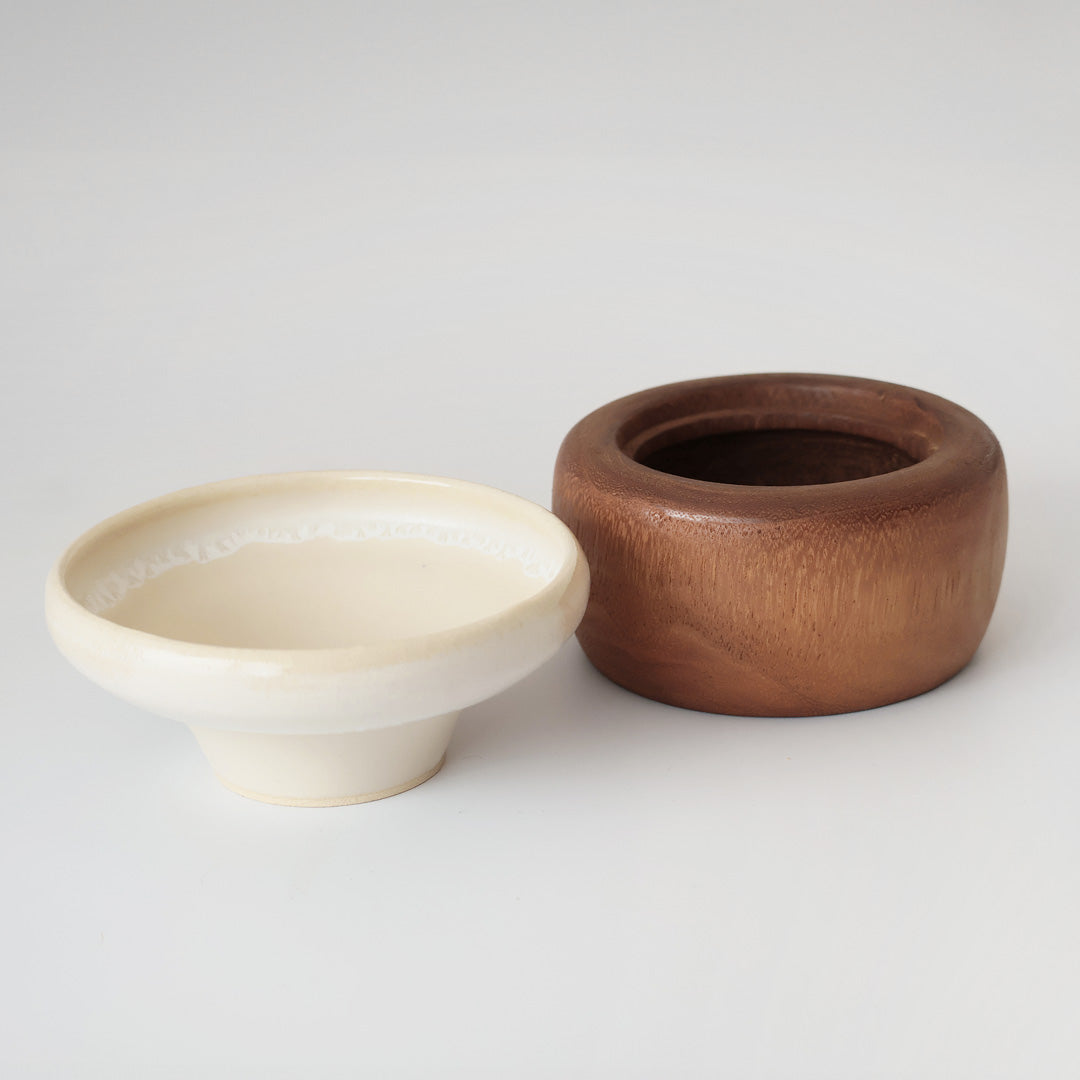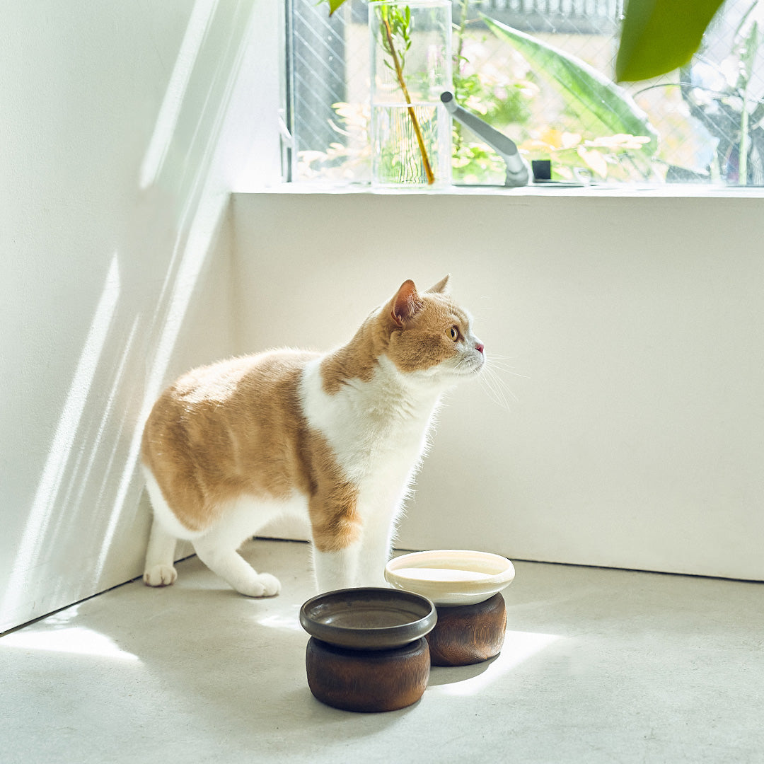 今回は、かつて桐灰皿として制作していた桐鉢を、I AM A CATのごはんのうつわの土台として、特別にご用意いただきました。