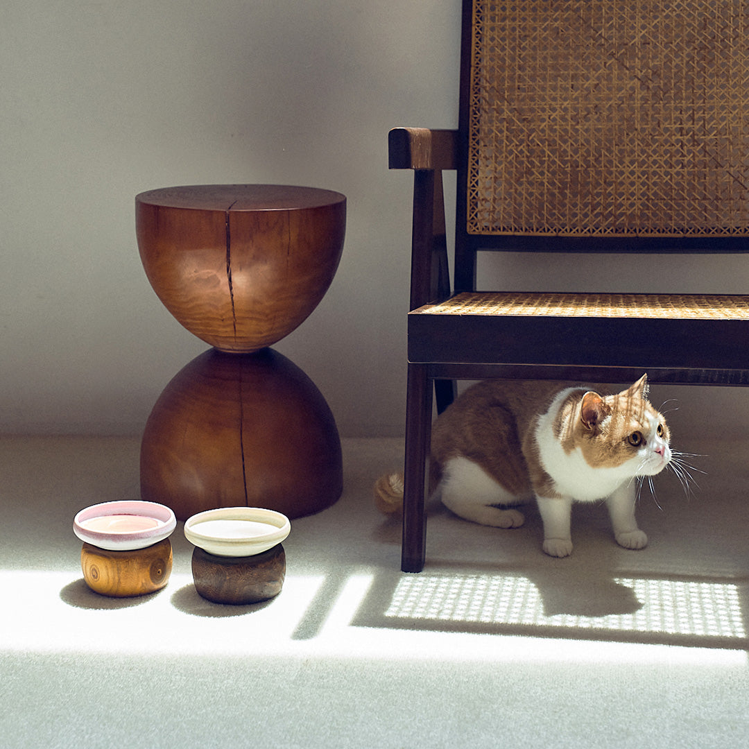 今回は、かつて桐灰皿として制作していた桐鉢を、I AM A CATのごはんのうつわの土台として、特別にご用意いただきました。